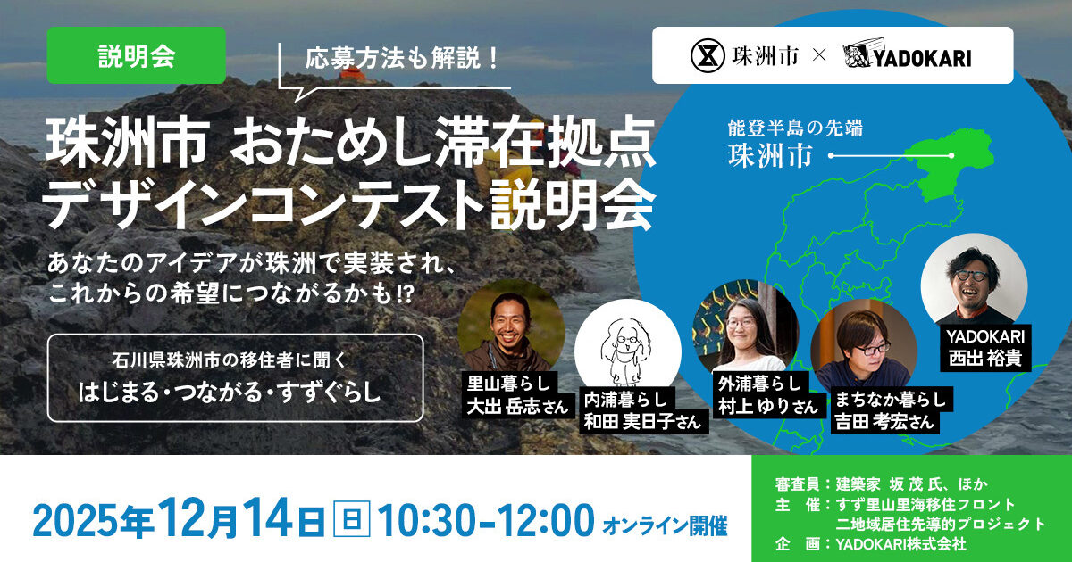 【オンライン説明会】珠洲市おためし滞在拠点デザインコンテスト