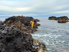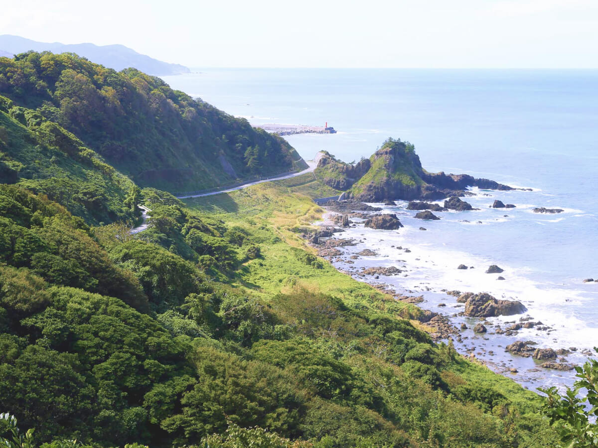 日本海に面した沿岸部の「外浦」は、荒々しい岩礁海岸が特徴で景勝地も数多くあります。塩や海藻、サザエなどが特産です。